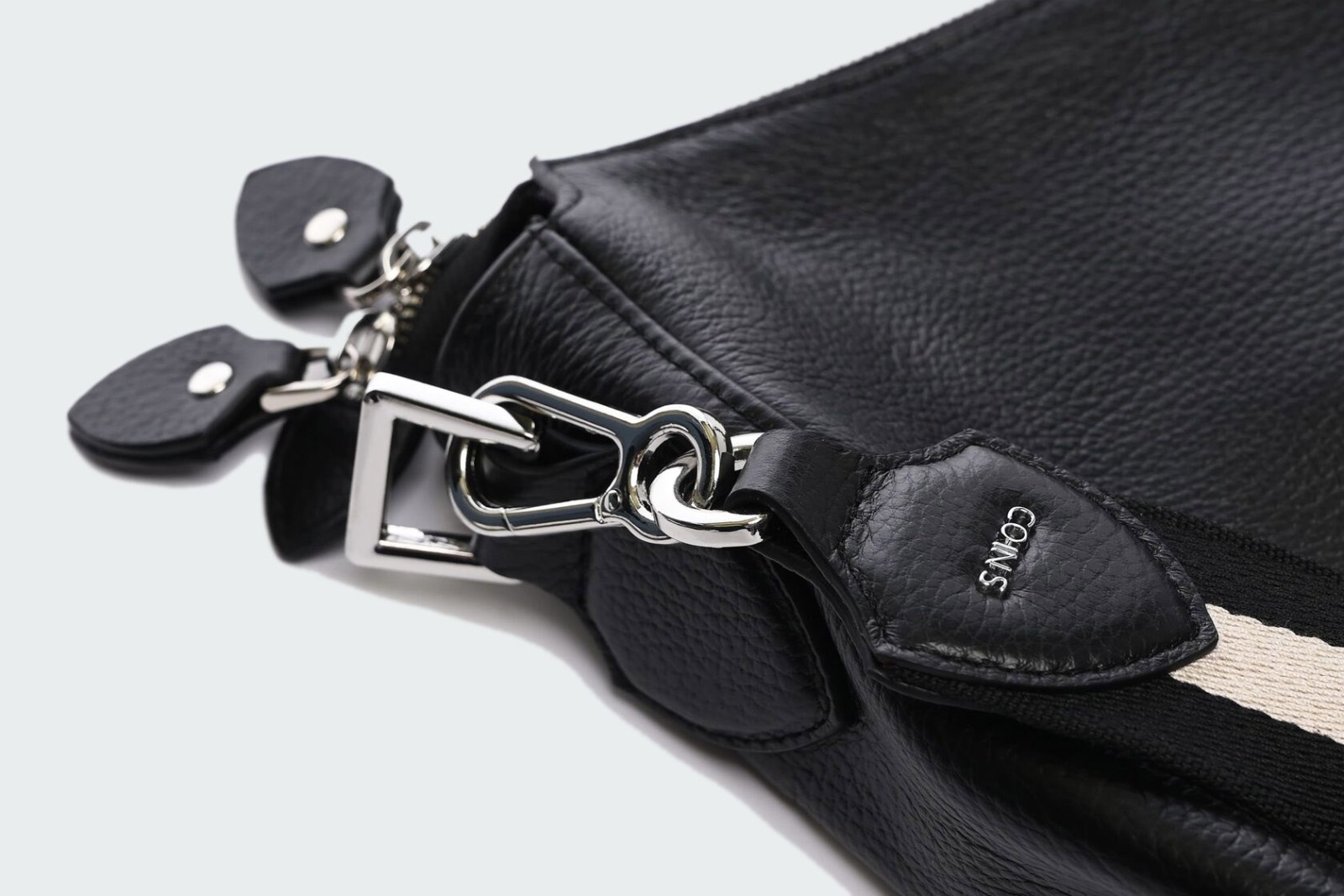 Для изготовления аксессуара использовали мягкую зернистую кожу. Она не боится царапин и повреждений, поэтому аксессуар будет долго выглядеть как новый. В комплект входят широкий хлопковый регулируемый плечевым ремень и брелок для ключей.