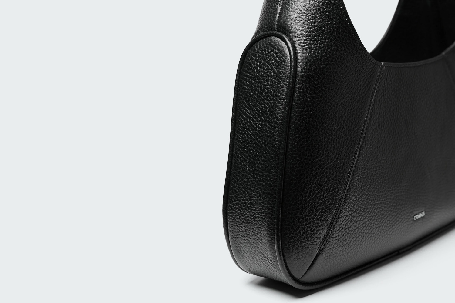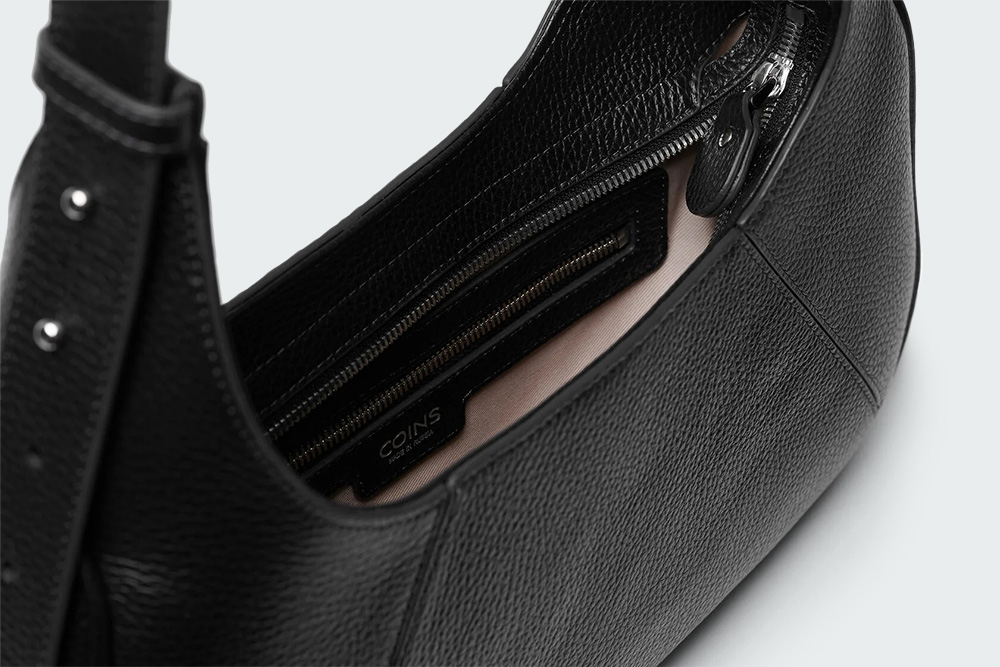 Сумка выполнена из мягкой зернистой кожи и закрывается на молнию. Регулируемый по длине плечевой ремень придает ей современный облик и предлагает разные способы ношения — в руке или на плече.