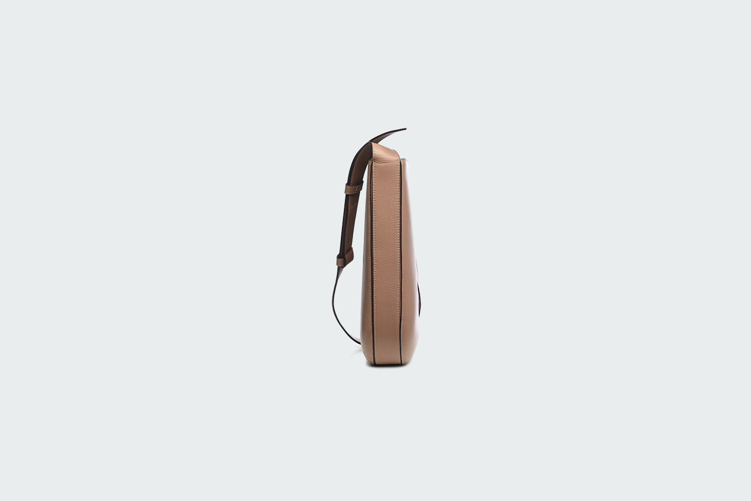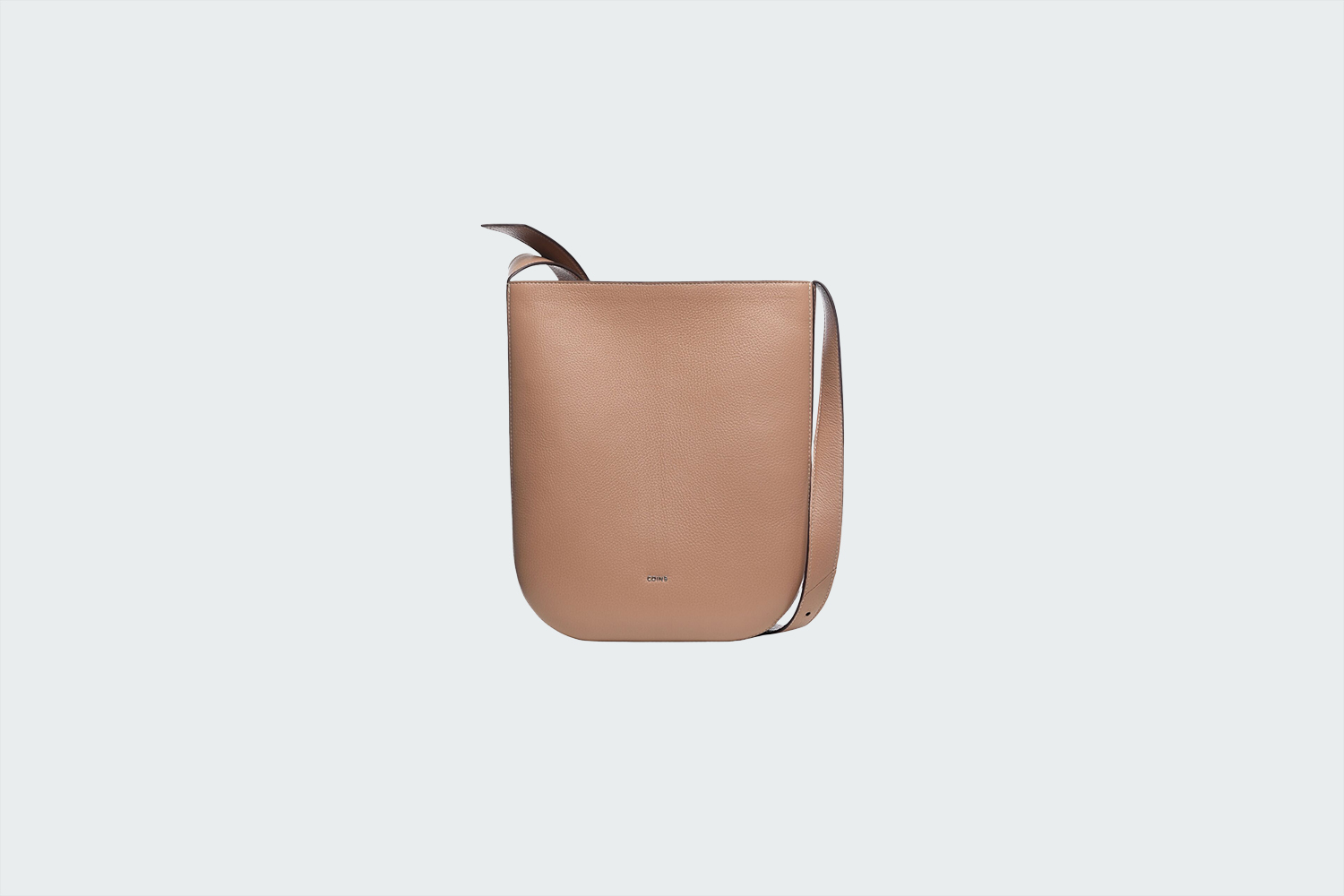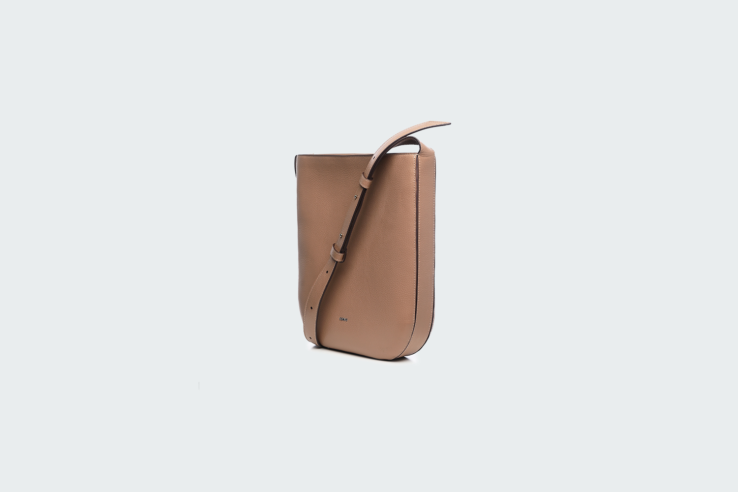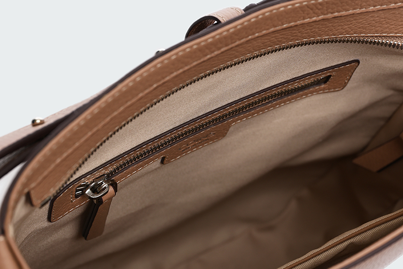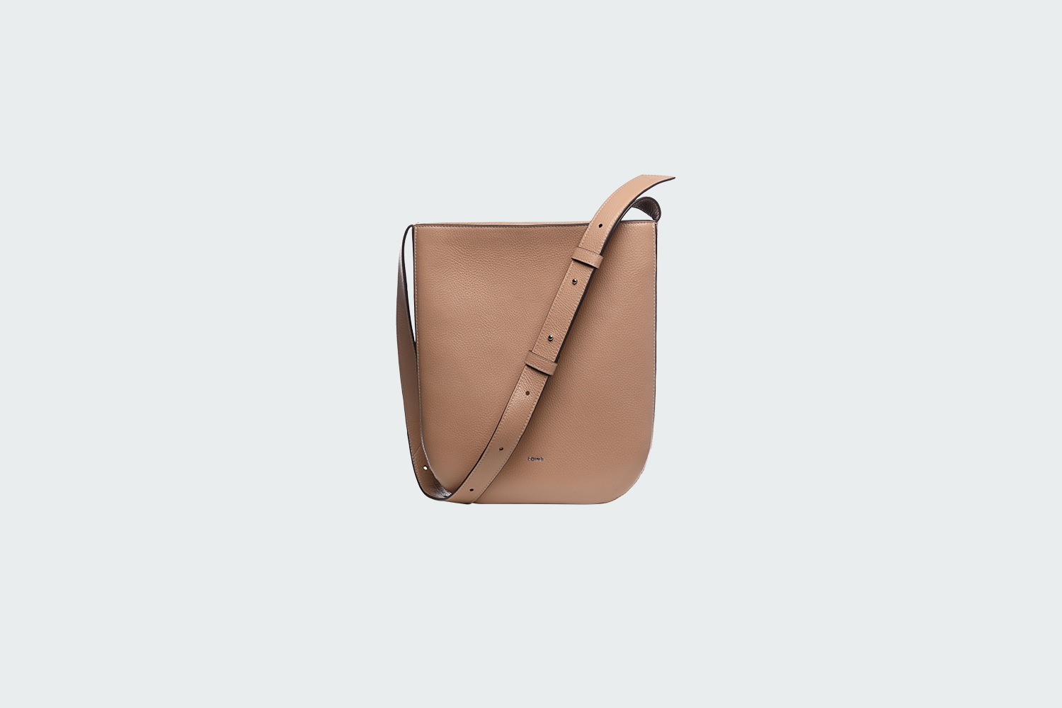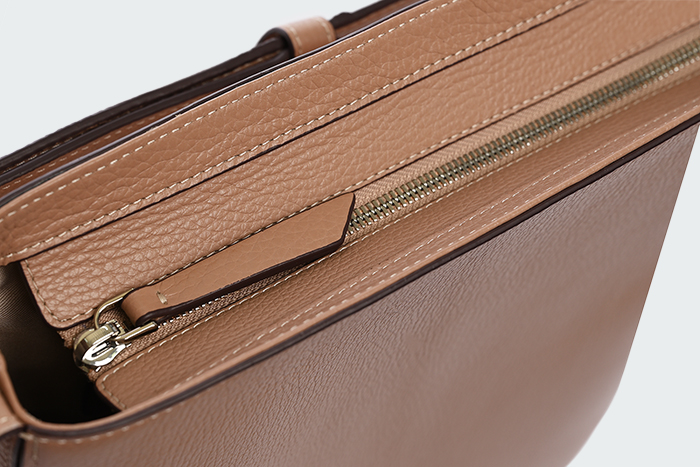 Модель выполнена из мягкой зернистой кожи и закрывается на молнию. Внутрь поместятся планшет, смартфон, кошелек и складной зонт.