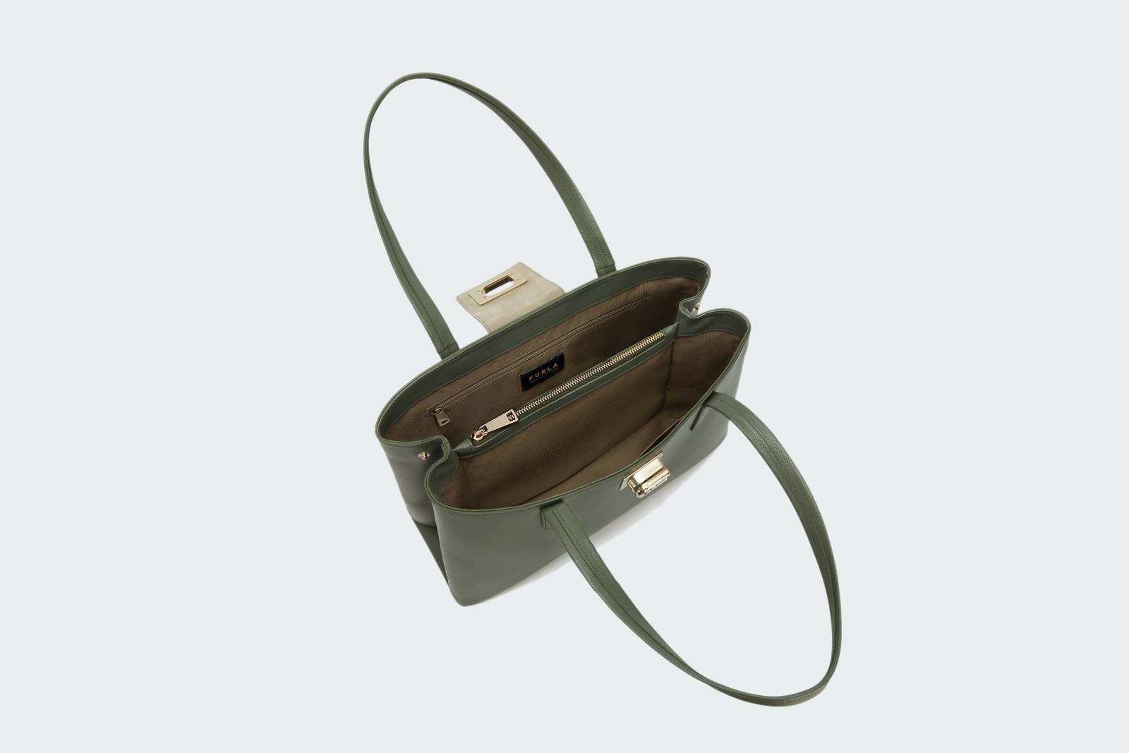 Изящная и элегантная сумка-тоут идеально подходит на каждый день и для отдыха благодаря своим большим размерам и просторному внутреннему отделению. Модель Furla 1927 из роскошной тисненой кожи с зерненой отделкой можно носить в руке или на плече благодаря длинным ручкам.