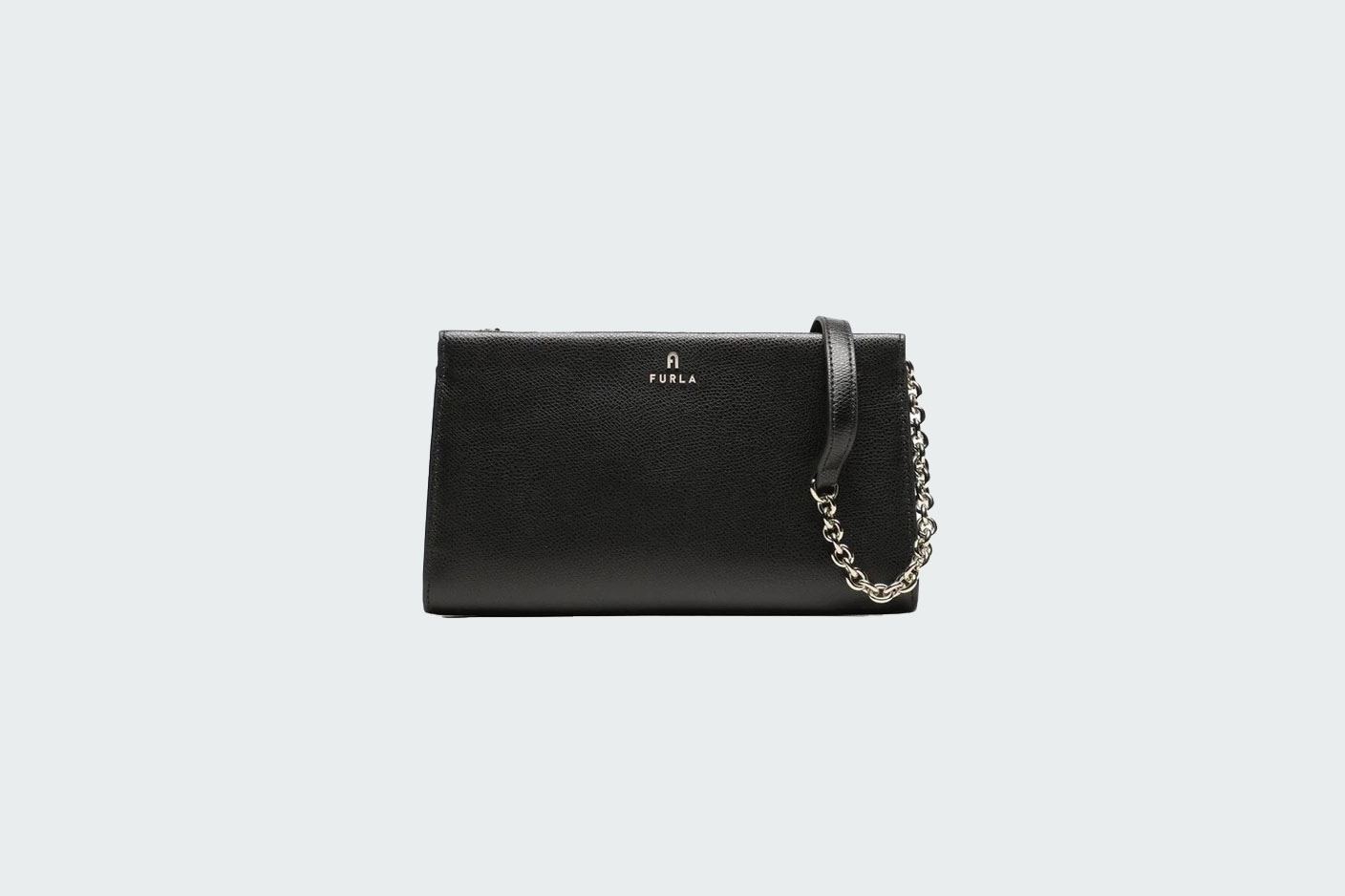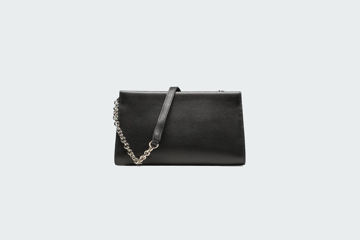 Миниатюрная сумка-кроссбоди из натуральной кожи черного цвета. Практичный комбинированный ремешок из кожи и металлической цепочки. Одно основное отделение на молнии.