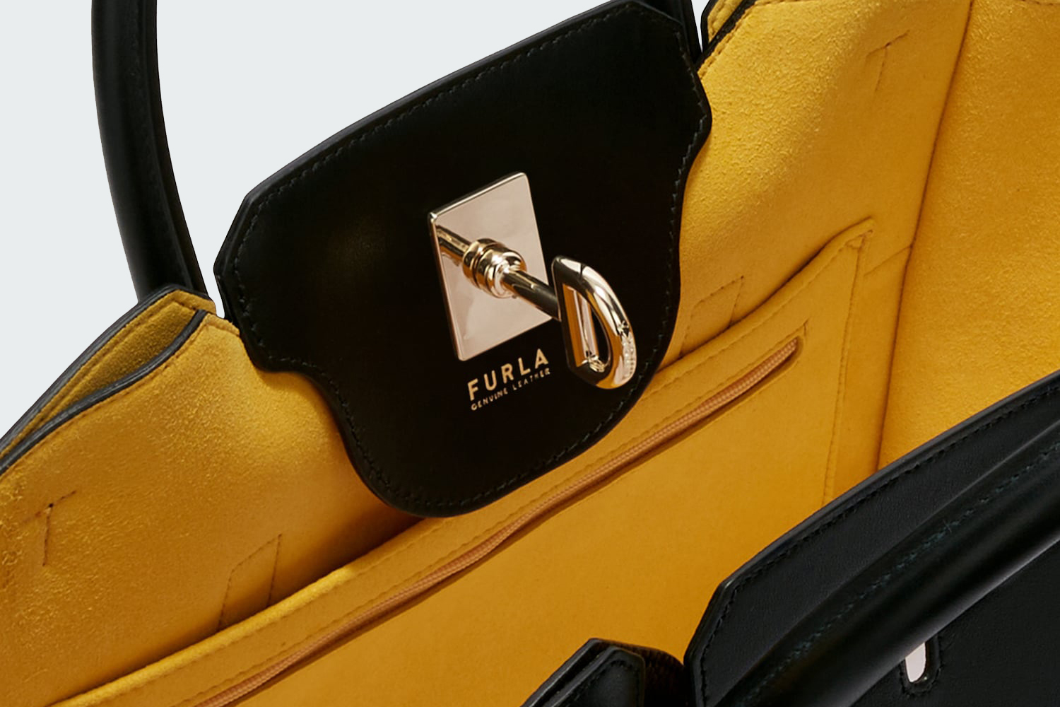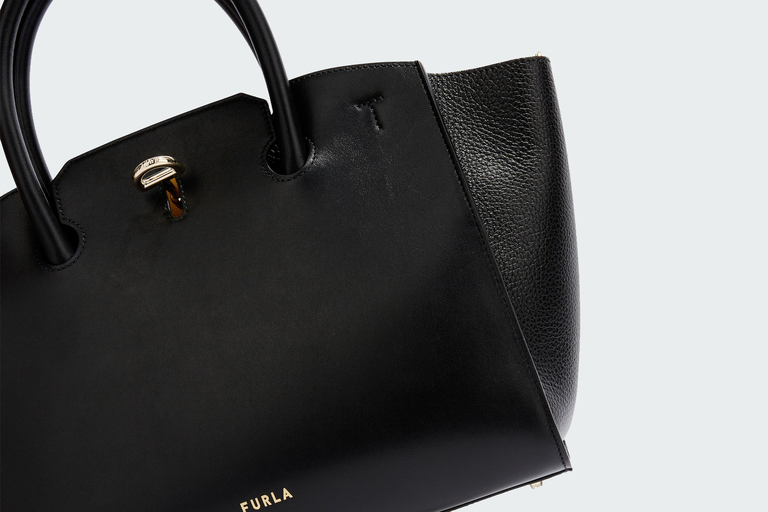 Сумка-тоут Furla Genesi, выполненная из гладкой кожи и отделанная тисненой кожей по бокам, отличается изысканным и оригинальным дизайном. Двойные ручки позволяют носить модель в руке, а плечевой ремень – на плече. Дизайн средней жесткости позволяет разместить в сумке необходимые предметы, благодаря чему она отлично подойдет на каждый день.