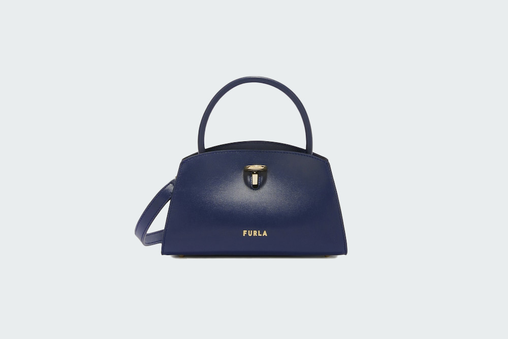 Furla Genesi – мини-сумка из мягкой телячьей кожи Roma со вставками из зерненой телячьей кожи по бокам. Съемный регулируемый ремень в тон позволяет носить эту модель через плечо. Завершает аксессуар стильная застежка с поворотным замком и логотипом Arch.