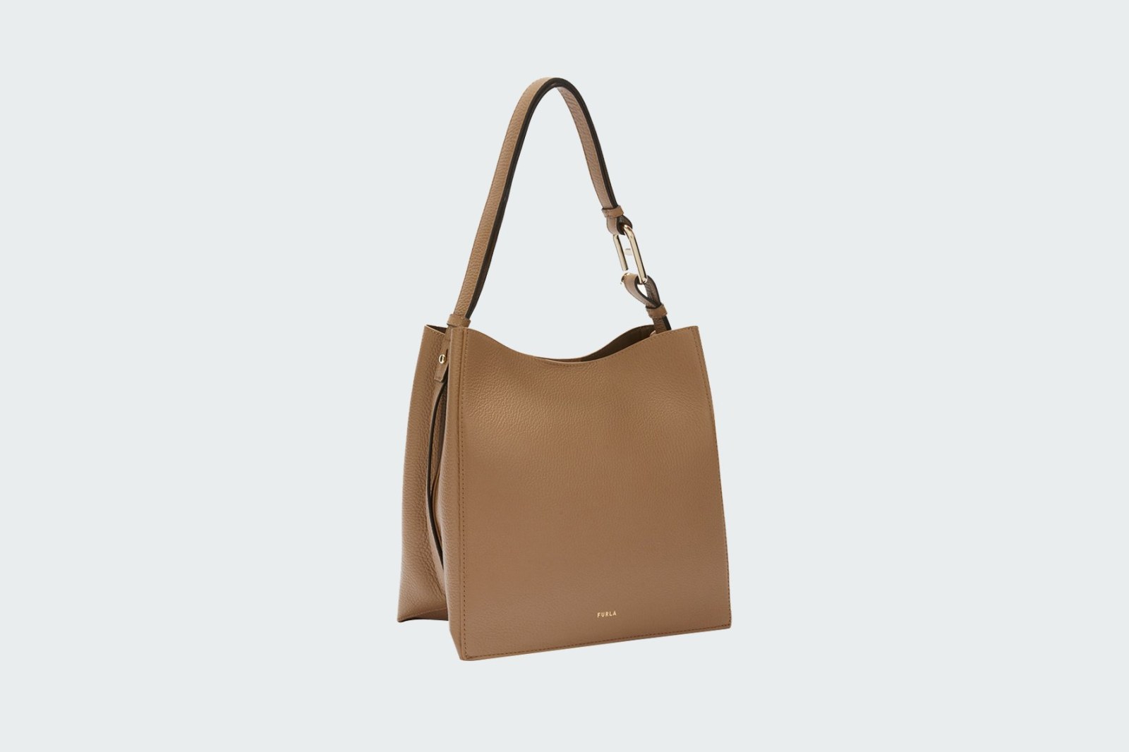 Лаконичные и элегантные линии новой сумки-торбы Furla Nuvola. Мягкая и легкая сумка из изысканной зерненой кожи с роскошным дизайном. Небольшой размер позволяет носить ее как в руке, так и на плече благодаря регулируемой ручке на пуговицах с характерной фурнитурой Arcosfera, объединяющей культовый логотип Furla Arch с фирменным круглым элементом бренда.