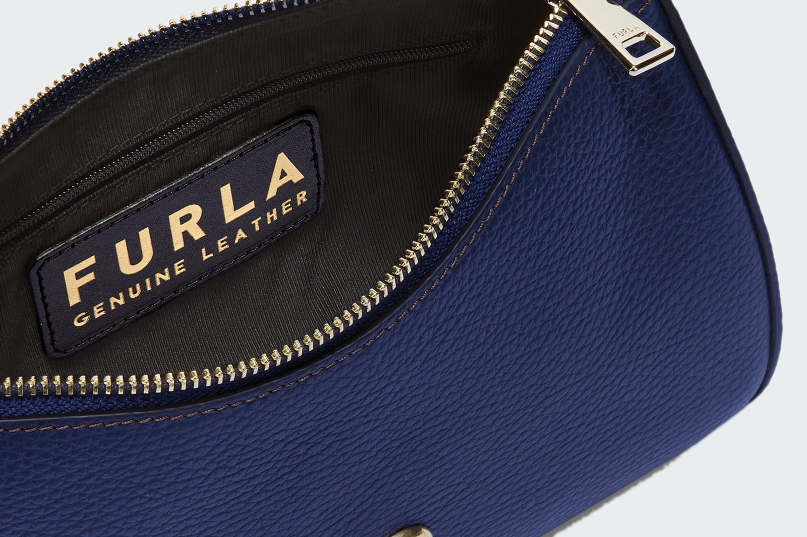 Мини-сумка Furla Primula предназначена для ношения на плече или через плечо. Модель выполнена из зерненой телячьей кожи и дополнена съемным регулируемым ремнем из плетеной ткани, а также вторым несъемным ремнем-цепочкой. Идеальный аксессуар на каждый день.