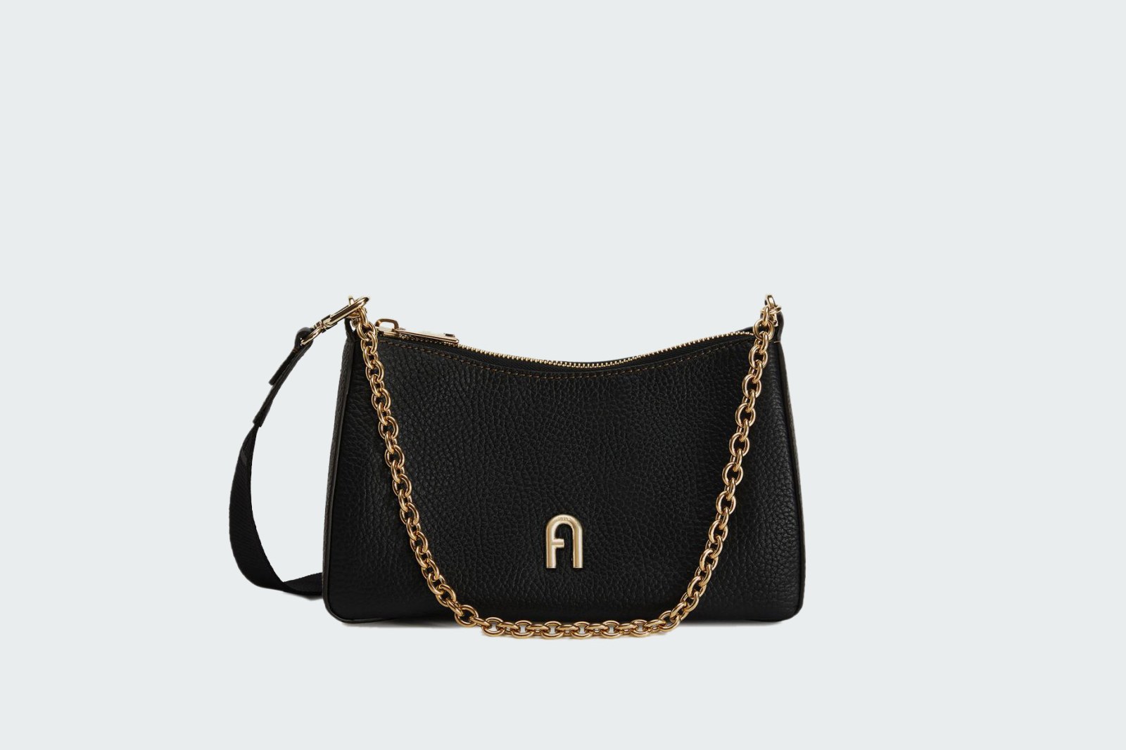Мини-сумка Furla Primula предназначена для ношения на плече или через плечо. Модель выполнена из зерненой телячьей кожи и дополнена съемным регулируемым ремнем из плетеной ткани, а также вторым несъемным ремнем-цепочкой. Идеальный аксессуар на каждый день.
