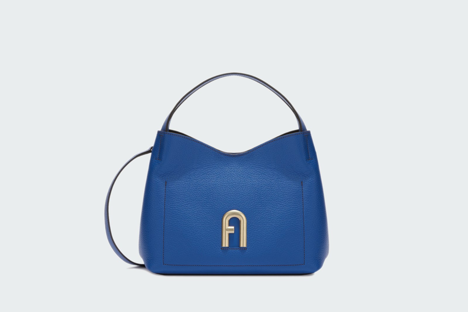 Furla Primula – маленькая сумка-хобо из зерненой телячьей кожи с контрастной внутренней подкладкой. Модель мягкой формы украшена металлическими деталями и фирменным логотипом Arch с гальванической золотистой отделкой и тисненым логотипом Furla сзади. Идеальный аксессуар, который позволяет всегда иметь под рукой все самое необходимое.