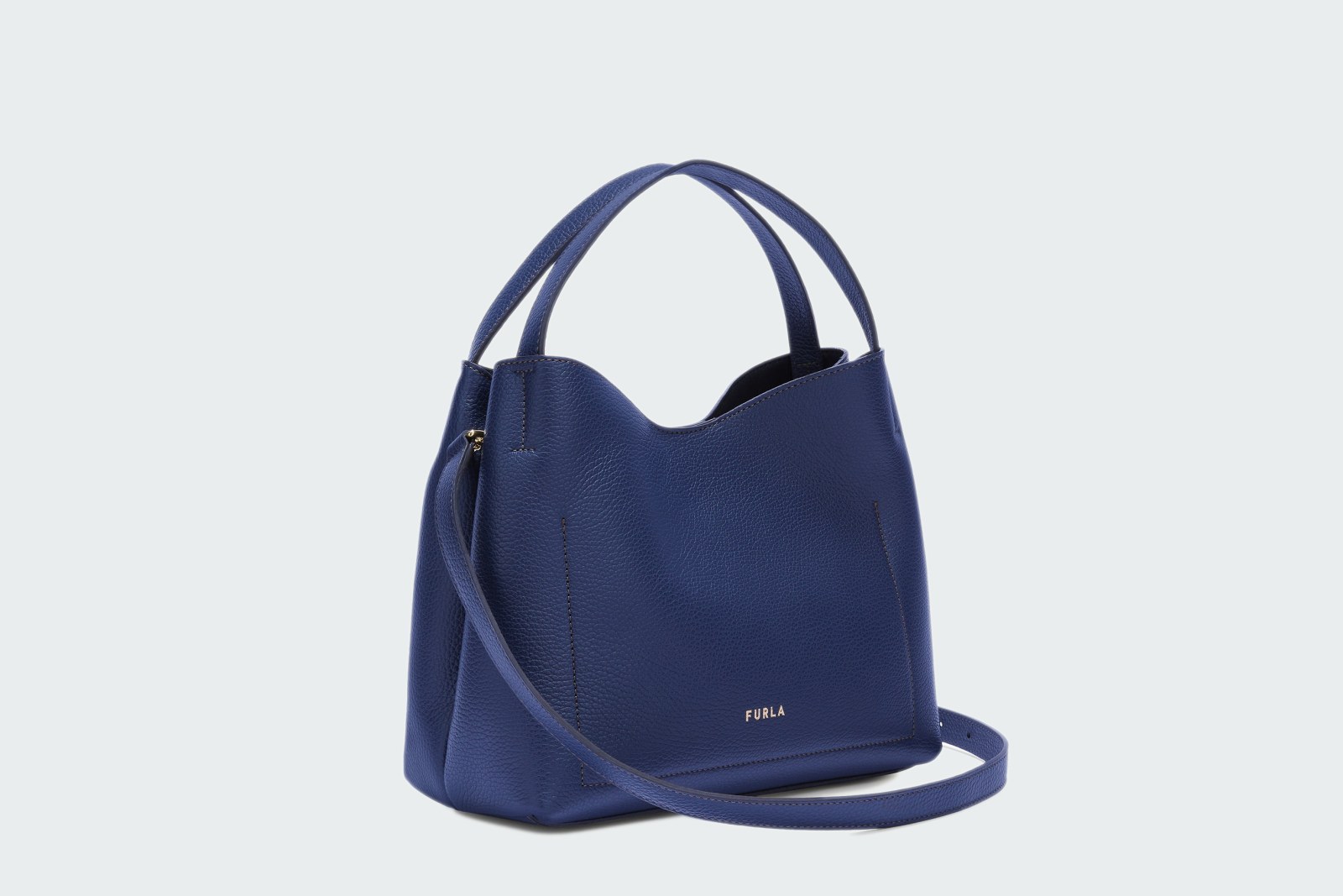 Furla Primula – маленькая сумка-хобо из зерненой телячьей кожи с контрастной внутренней подкладкой. Модель мягкой формы украшена металлическими деталями и фирменным логотипом Arch с гальванической золотистой отделкой и тисненым логотипом Furla сзади. Идеальный аксессуар, который позволяет всегда иметь под рукой все самое необходимое.