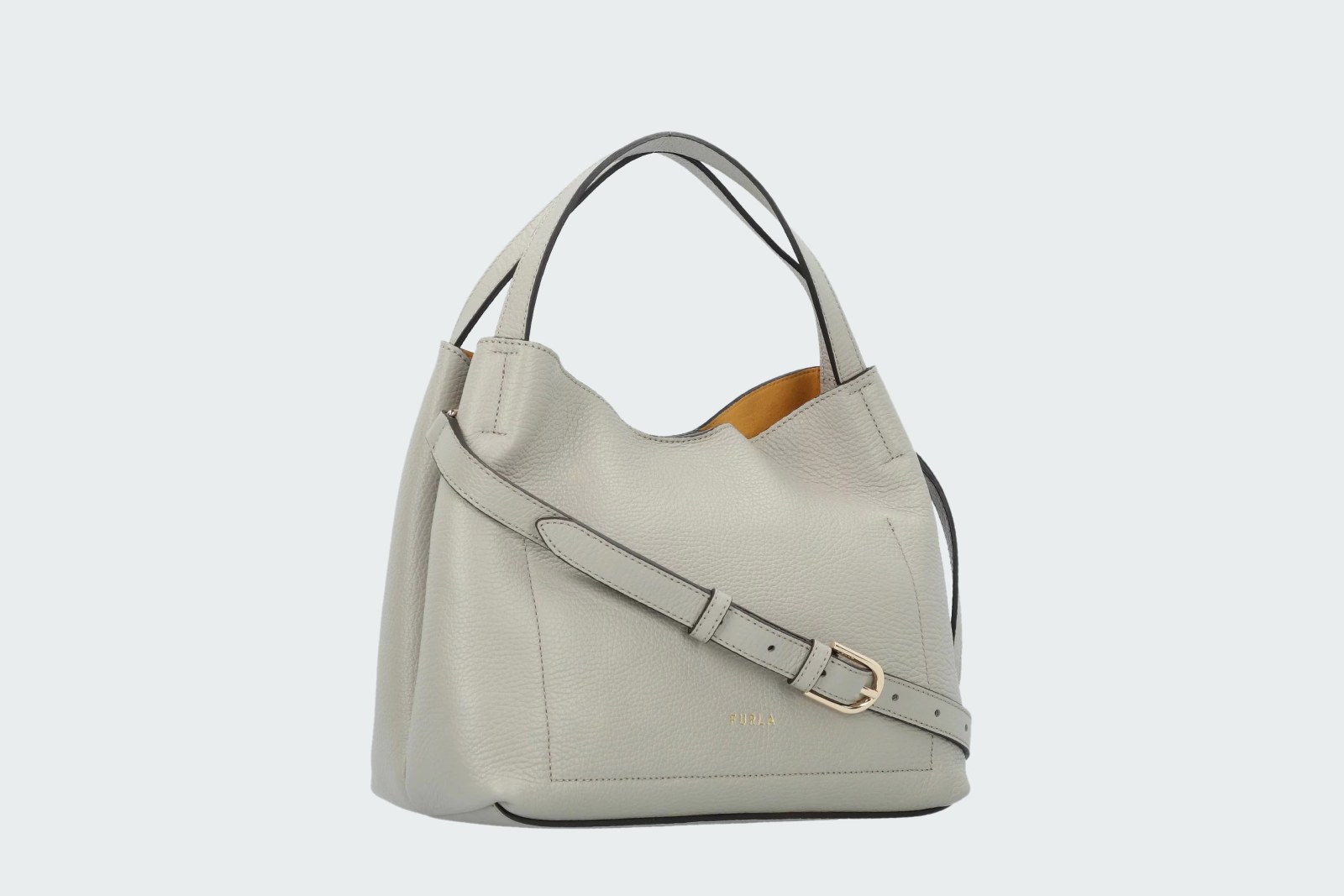 Furla Primula – маленькая сумка-хобо из зерненой телячьей кожи с контрастной внутренней подкладкой. Модель мягкой формы украшена металлическими деталями и фирменным логотипом Arch с гальванической золотистой отделкой и тисненым логотипом Furla сзади. Идеальный аксессуар, который позволяет всегда иметь под рукой все самое необходимое.