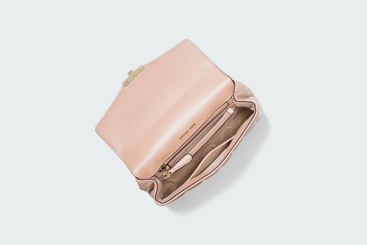 Сумка через плечо SoHo, названная в честь культового района Нью-Йорка, изготовлена из кожи с шикарной стеганой отделкой. Застежка с нажимным замком открывает вместительное внутреннее отделение, куда можно положить бумажник, ключи и губную помаду, а во внешнем заднем кармане ваш телефон всегда будет на расстоянии вытянутой руки.