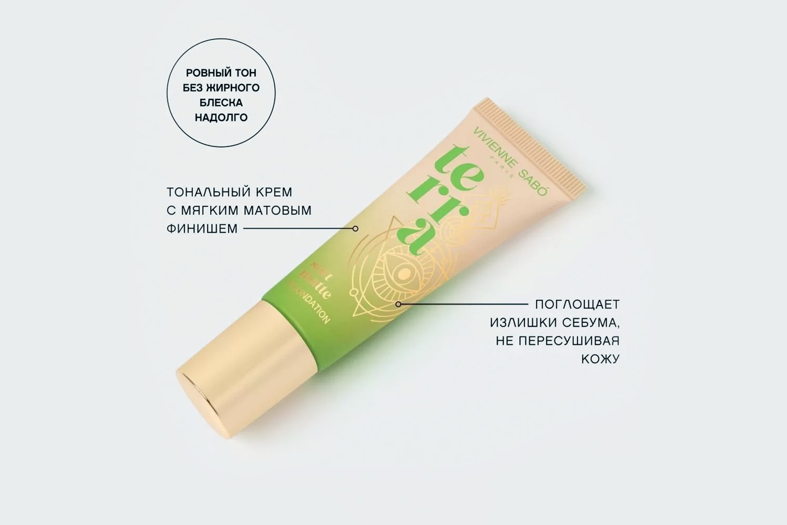 TERRA — тональный крем от VIVIENNE SABÓ с мягким матовым финишем. Он станет надежной основой твоего макияжа.