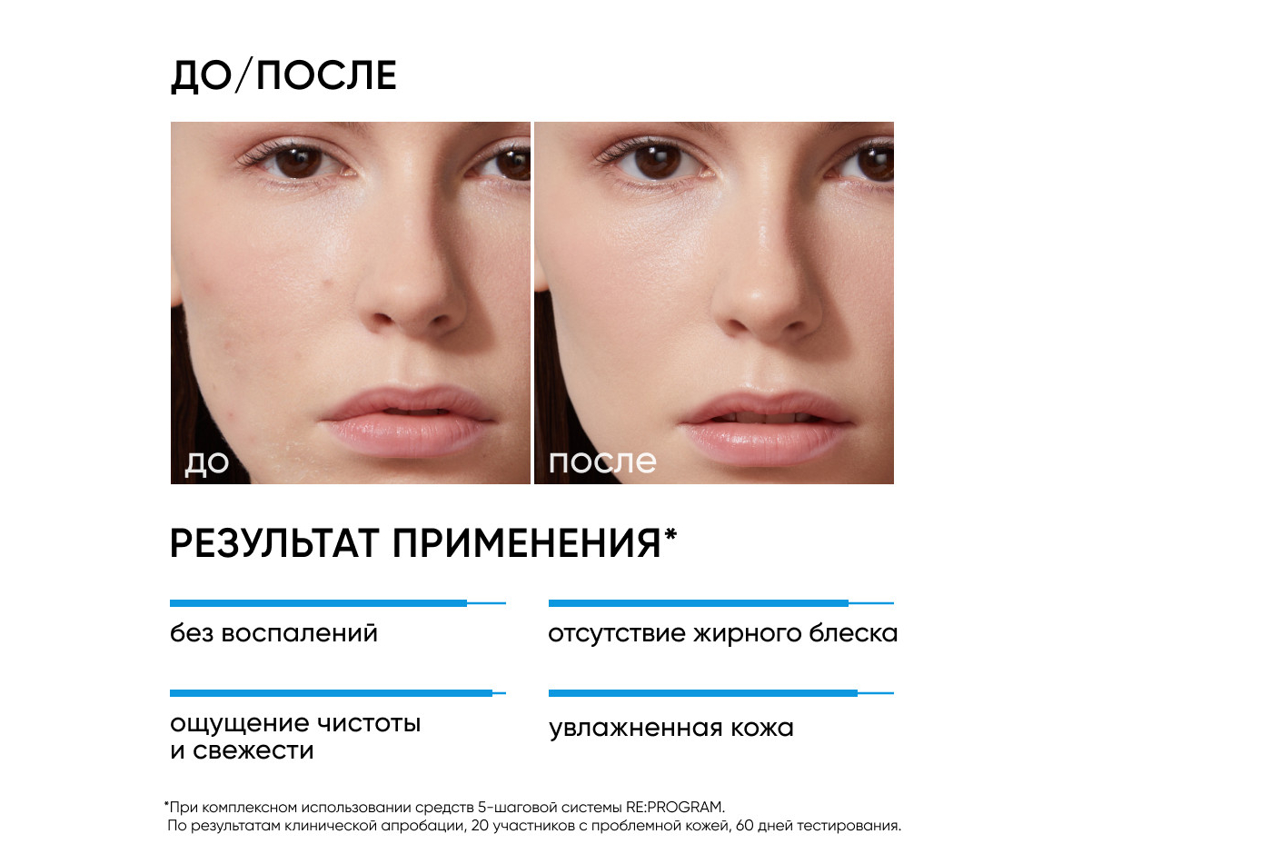 РЕЗУЛЬТАТ ЧЕРЕЗ МЕСЯЦ: чистая кожа, меньше воспалений и жирного блеска.