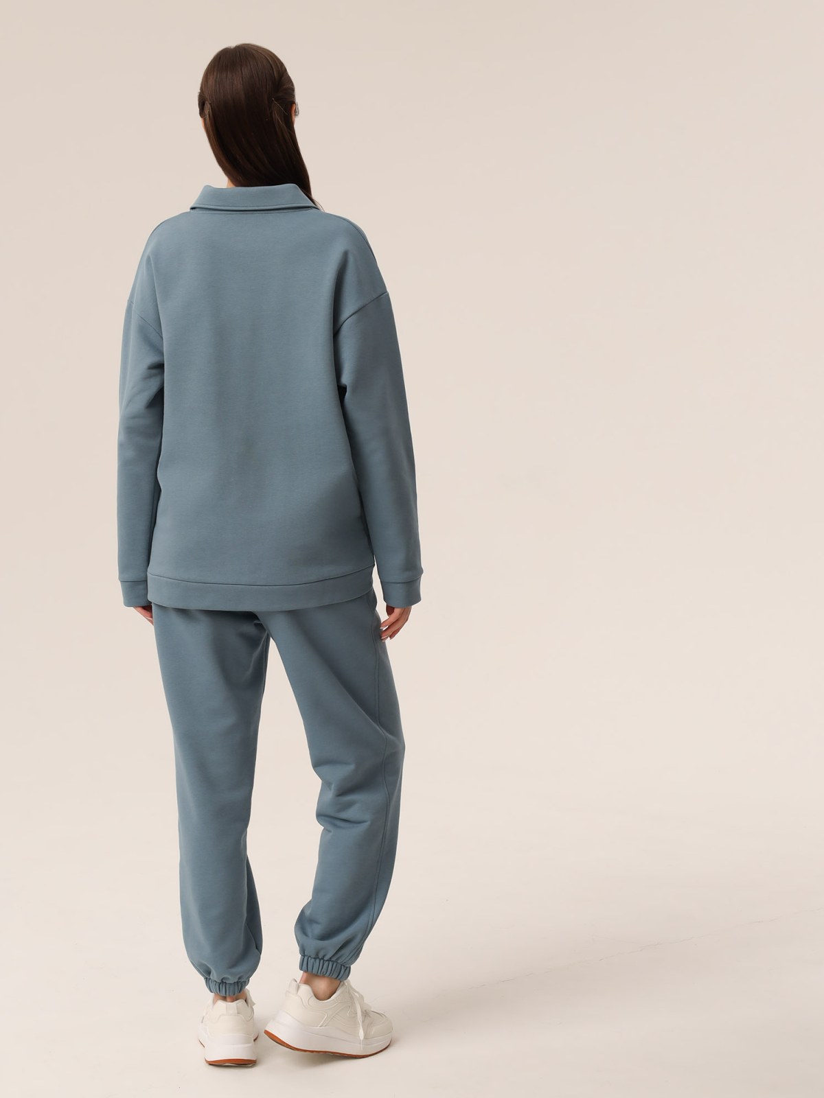 Женский свитшот поло с воротником свободного силуэта из премиального футера. Обьемный крой, удлиненный рукав, спущенное плечо и теплый материал подарят ощущение комфорта и уюта.