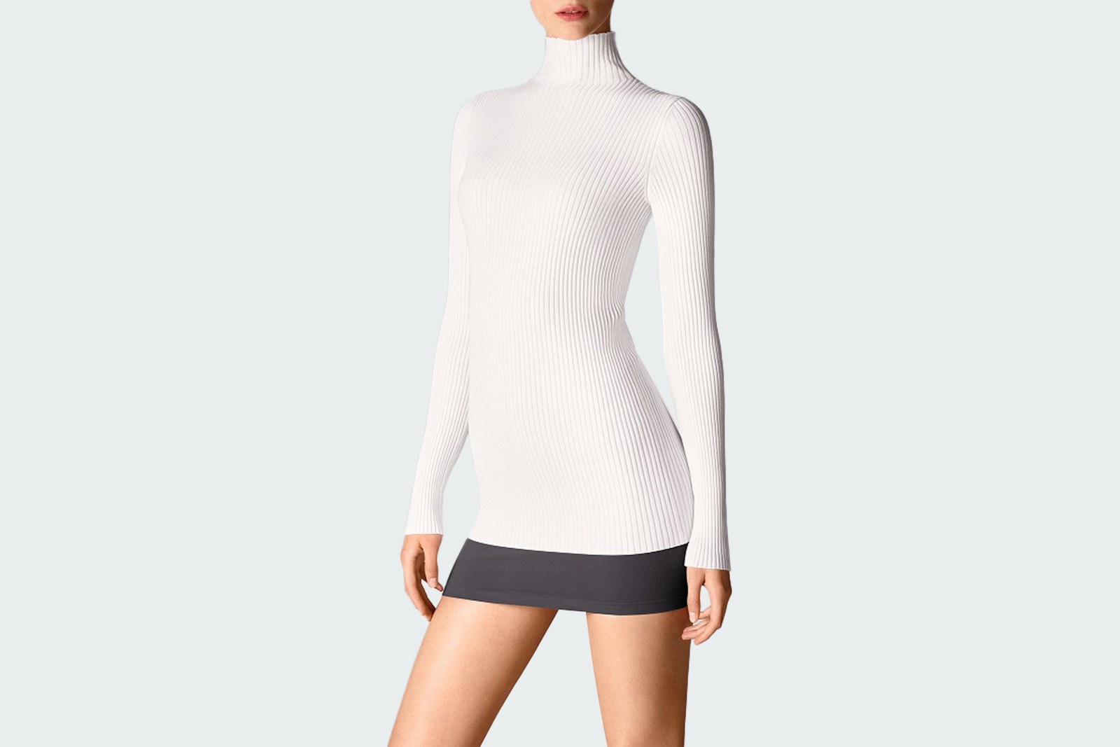 Модная классика на каждый день. Пуловер с длинным рукавом и воротником-стойкой из мягкой вискозы ребристой структуры дополнит минималистичный лаконичный образ и сделает вас стройнее.
