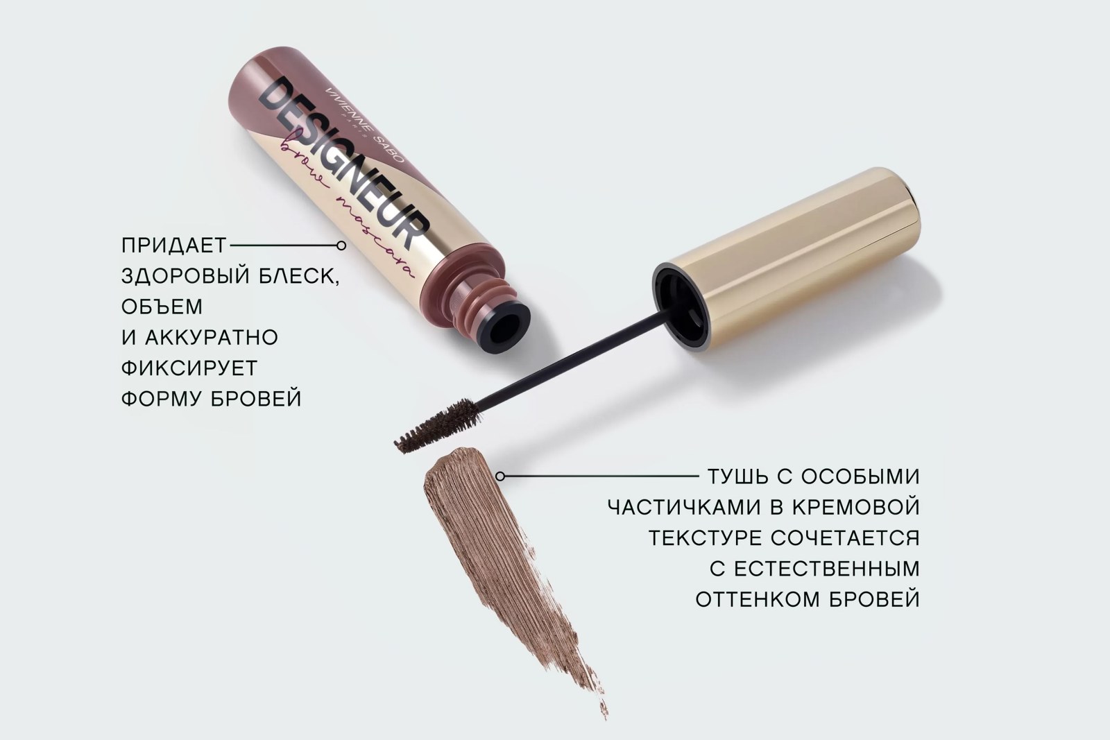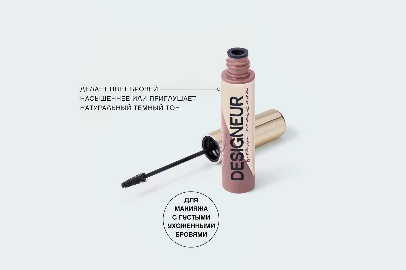 DESIGNEUR — новая тушь для бровей с расширенной палитрой оттенков. Позволяет создавать безупречный дизайн бровей, делая их густыми и ухоженными, идеально подходящими для любого мероприятия.