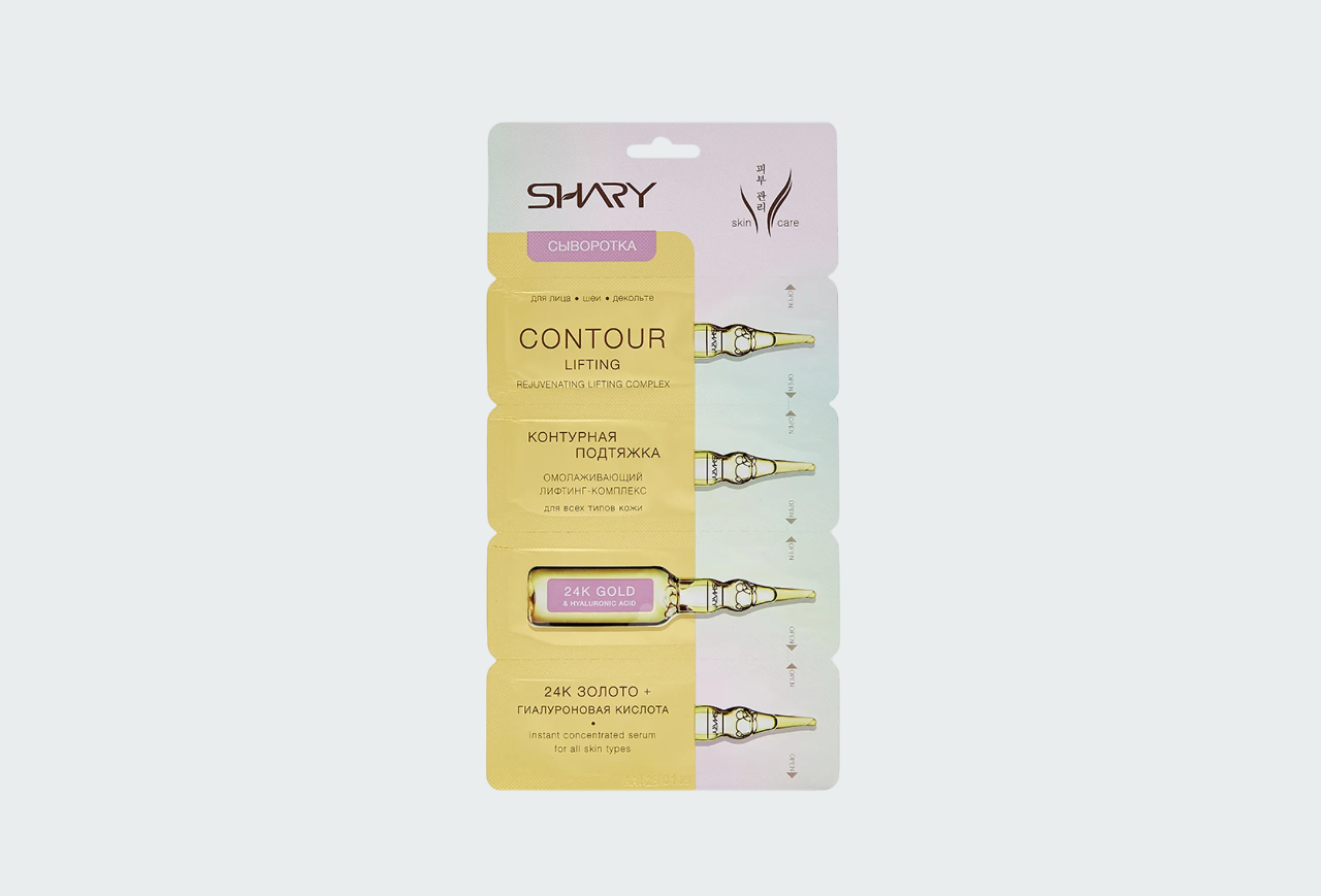 Сыворотка Shary "Контурная подтяжка" — омолаживающее средство с золотом и гиалуроновой кислотой, подходящее для всех типов кожи. Ионы золота стимулируют обновление клеток, повышают синтез коллагена и улучшают кислородное питание кожи. Гиалуроновая кислота глубоко увлажняет, сохраняя упругость и ровный цвет лица. Результат — заметный лифтинг-эффект, устранение признаков усталости и возвращение коже здорового сияния.