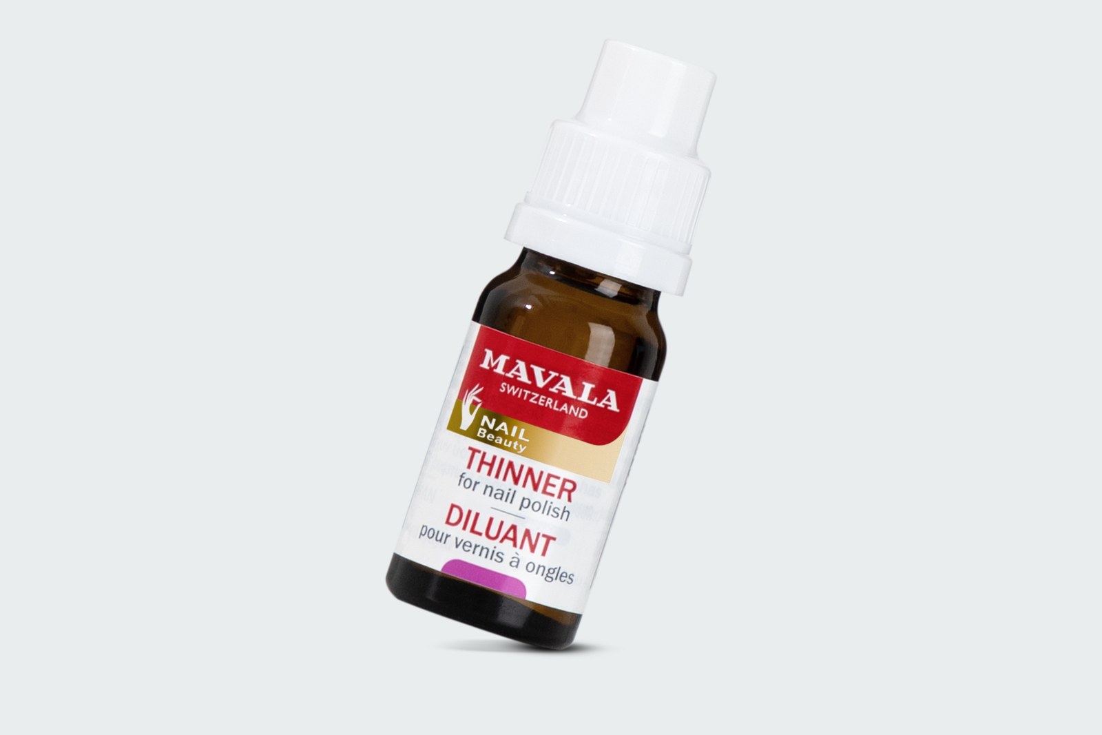 Разбавитель лака Mavala помогает восстановить нормальную консистенцию лака, что облегчает его нанесение и увеличивает стойкость маникюра. Слишком густой лак долго сохнет, быстрее скалывается и трескается. Пипетка, которая идёт в комплекте с разбавителем, позволяет точно отмерить нужное количество жидкости. Оптимальная консистенция лака — когда он стекает с кисточки каплей и на ногте остаётся его тонкий слой.