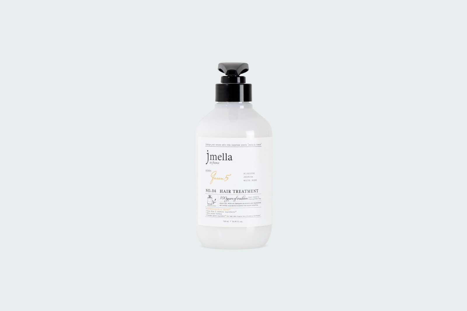 Маска-кондиционер для ослабленных и поврежденных волос, с ароматом жасмина и белого мускуса Jmella In France Queen 5 Hair Treatment, восстанавливает структуру, смягчает и разглаживает чешуйки волос. Создает на волосах невесомую защитную оболочку, обеспечивает блеск и облегчает расчесывание. Не утяжеляет. Дарит волосам здоровый и ухоженный вид.