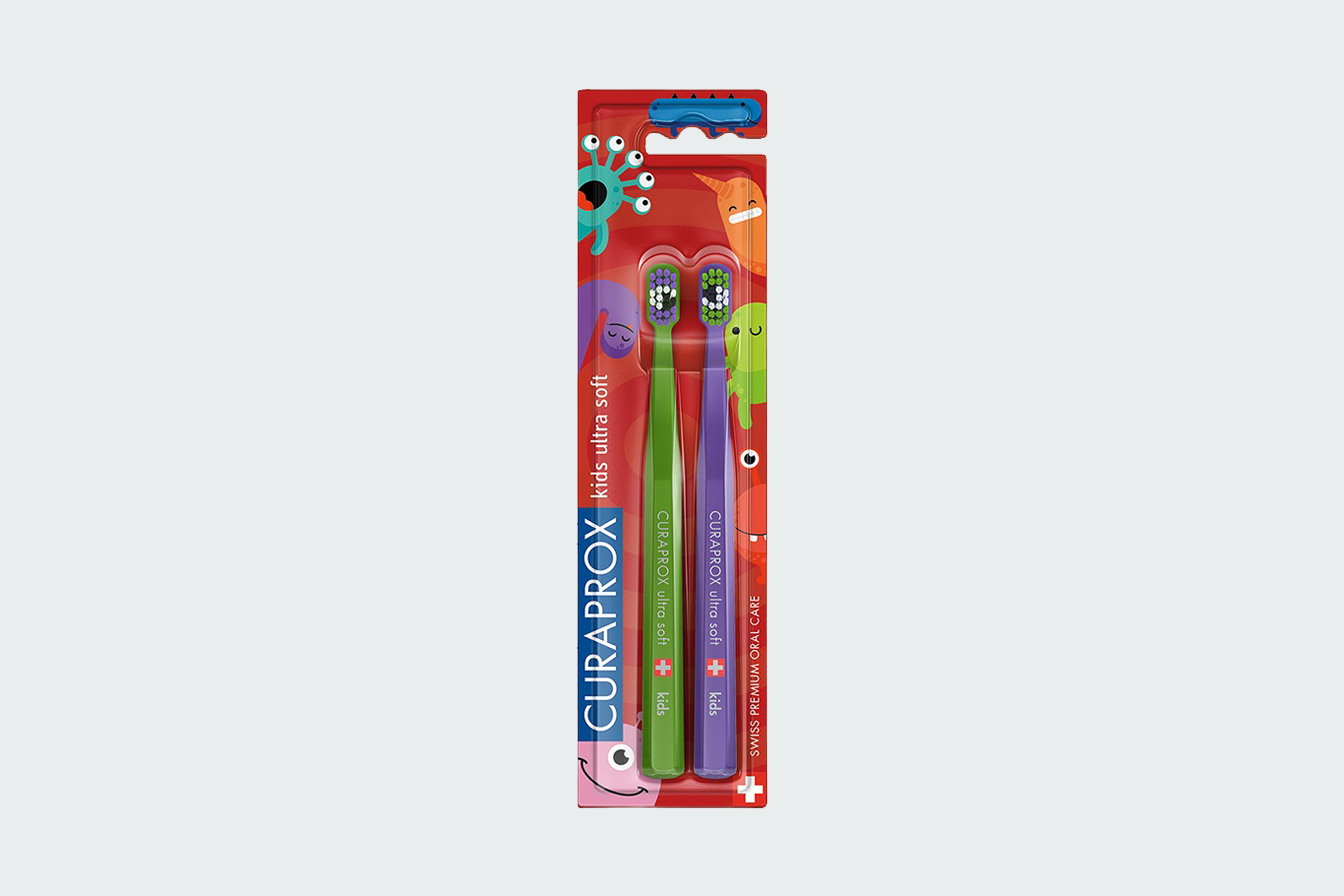 Лимитированный набор зубных щеток CURAPROX kids для детей от 4-х лет ultra soft. Инновация и новинка в сфере стоматологии и педиатрии. Рекомендованы при чувствительной эмали и чувствительности десен, для повышения мотивации чистки зубов у детей.