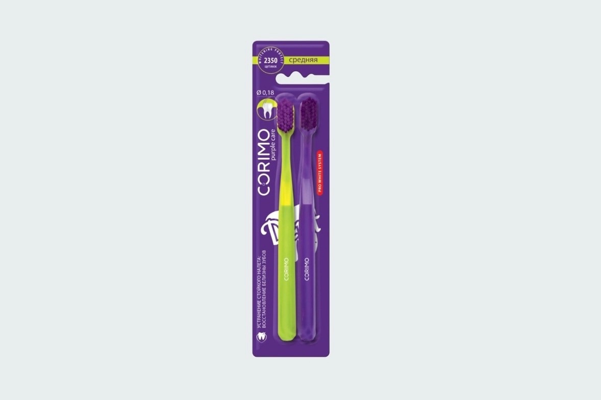 Зубная щетка средней жесткости предназначена для интенсивного и качественного отбеливания и очищения полости рта. Щетина состоит из нейлона, который эффективно очищает зубы от налёта, остатков пищи и пигментации (налёт курильщика, кофе и различных пищевых красителей), при этом не травмируя и деликатно массируя дёсны. В комплекте 2 шт.