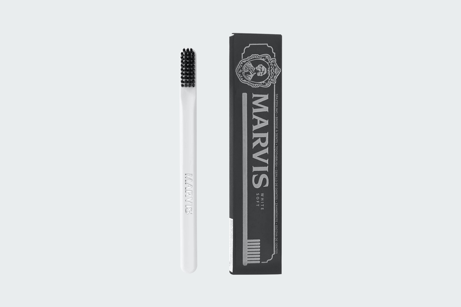 Лаконичная зубная щетка Marvis в белом цвете с мягкой степенью жёсткости. Зубная щётка обеспечивает максимально тщательную, но при этом бережную чистку зубов. В комплекте с зубной щеткой предоставляется защитный чехол, защищающий щетинки от бактерий и загрязнений.